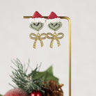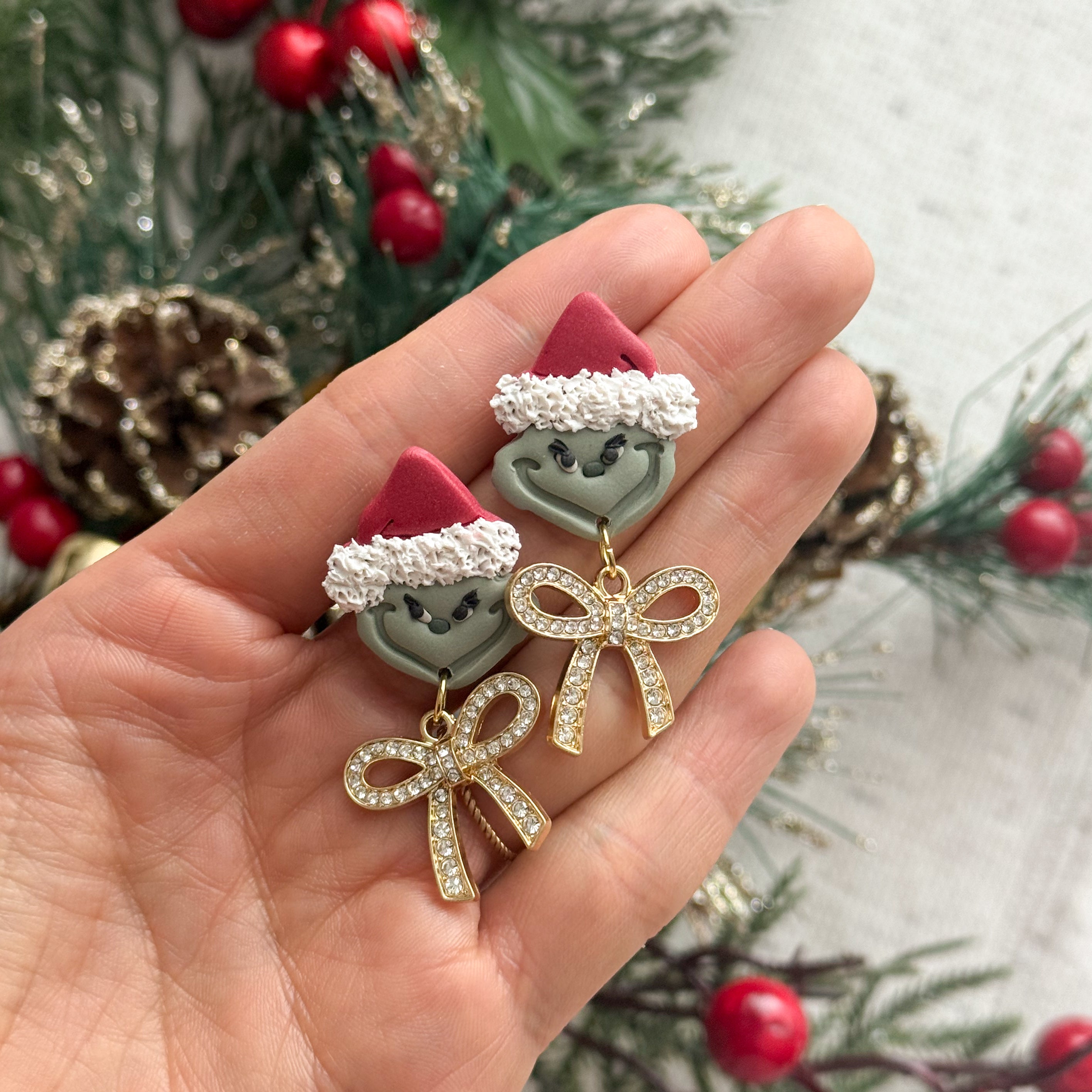 Colors: Green with red Christmas Hats and white hat fluff with a Zircon Bow Charm