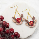 Colors: Latte Brown Reindeer with Red Nose and Green Leaves with Red Florals with Shimmery Golf Accente