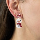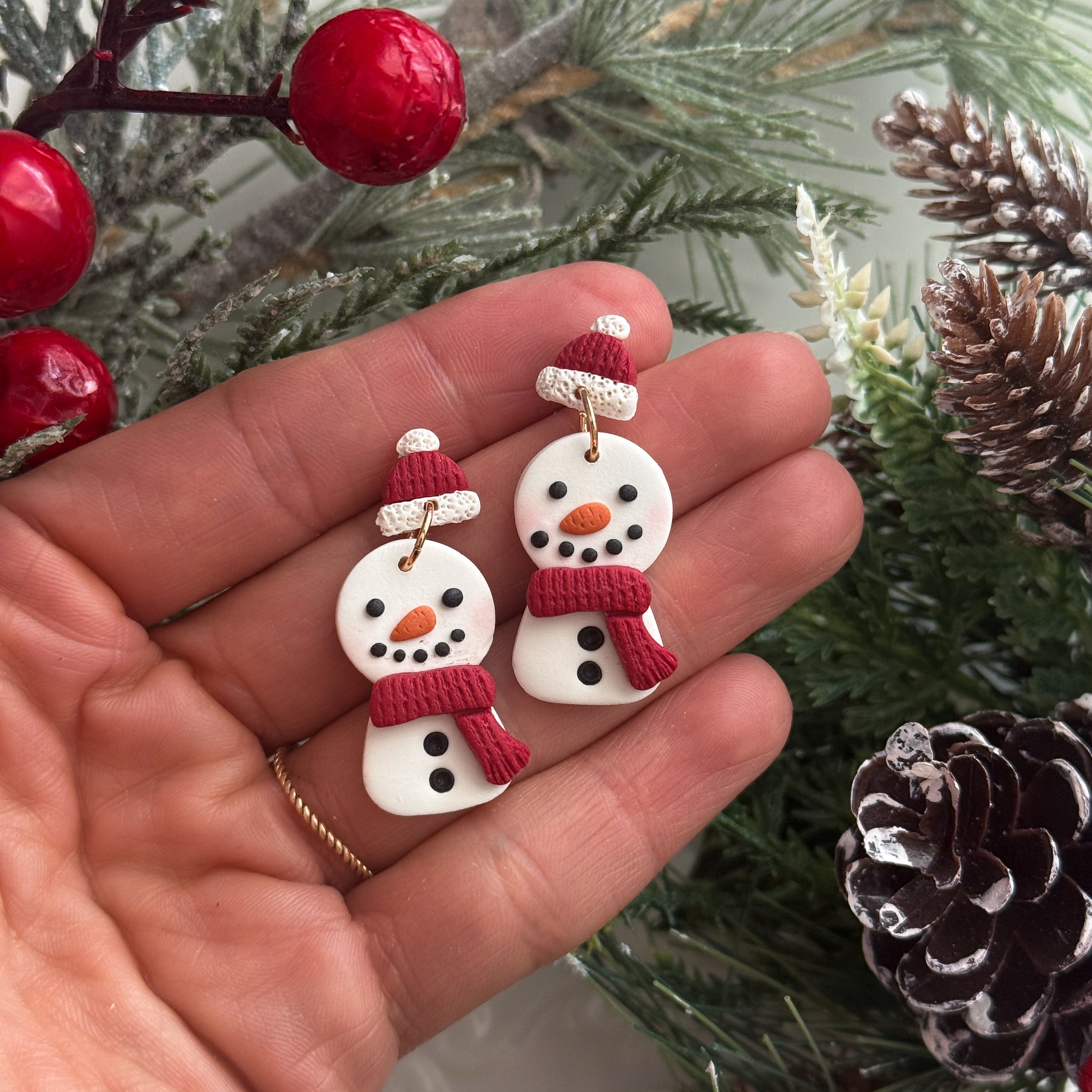 Adorable Little Snowman Dangles with a a Christmas Red Scarf & Beanie