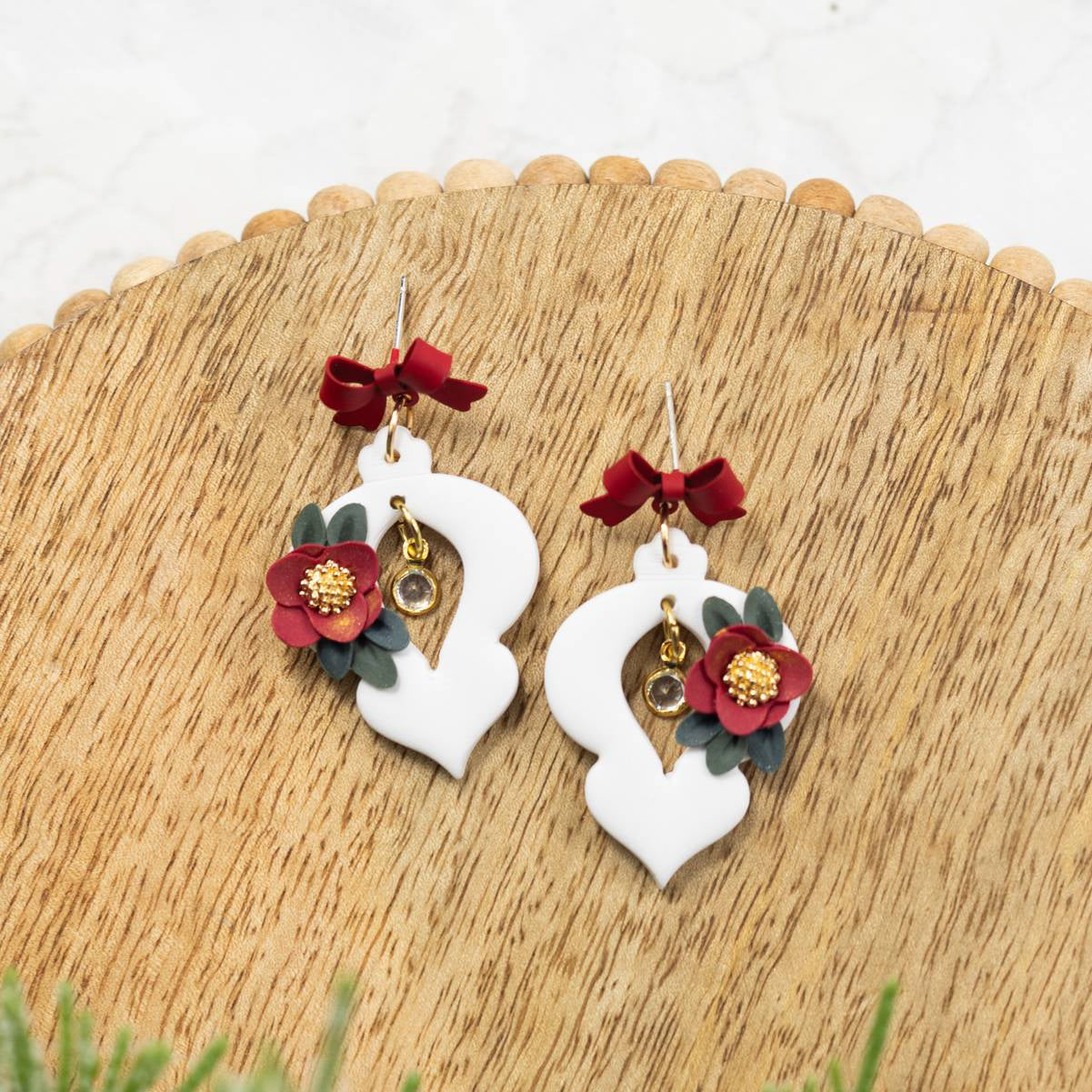 Colors: White Ornaments with Dark green Leaves and Deep Red Florals