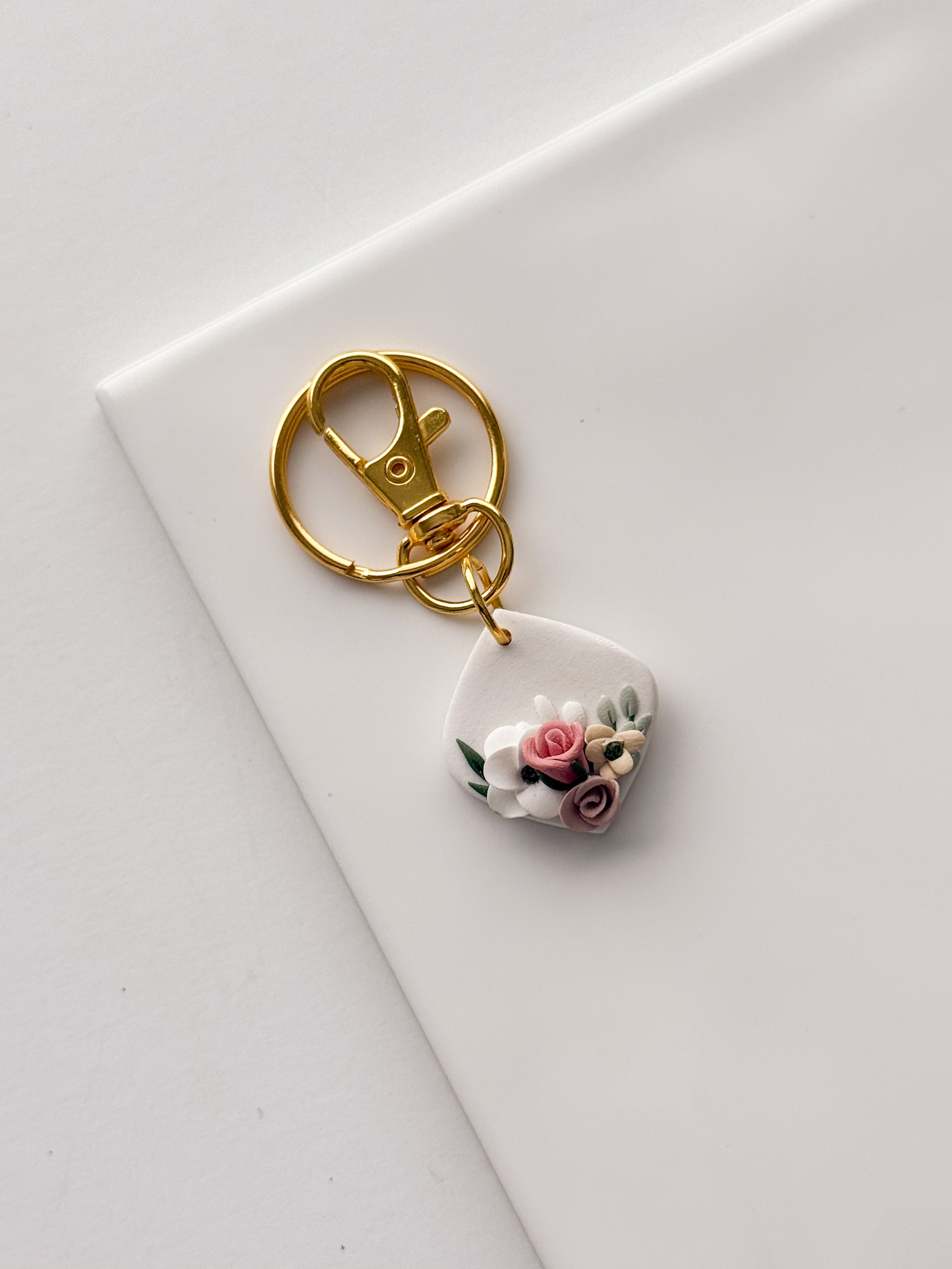 Floral Rounded Diamond Keychain
