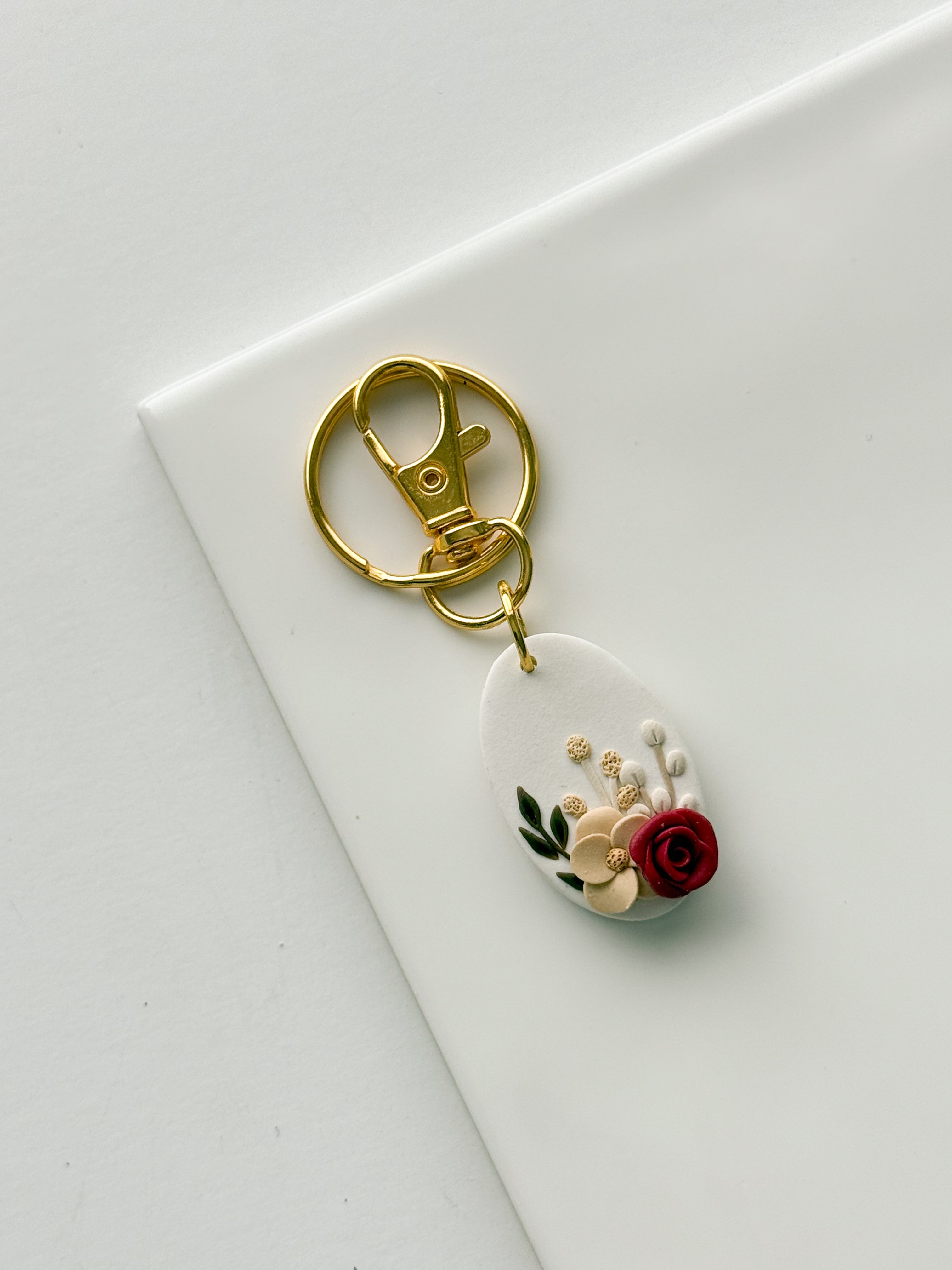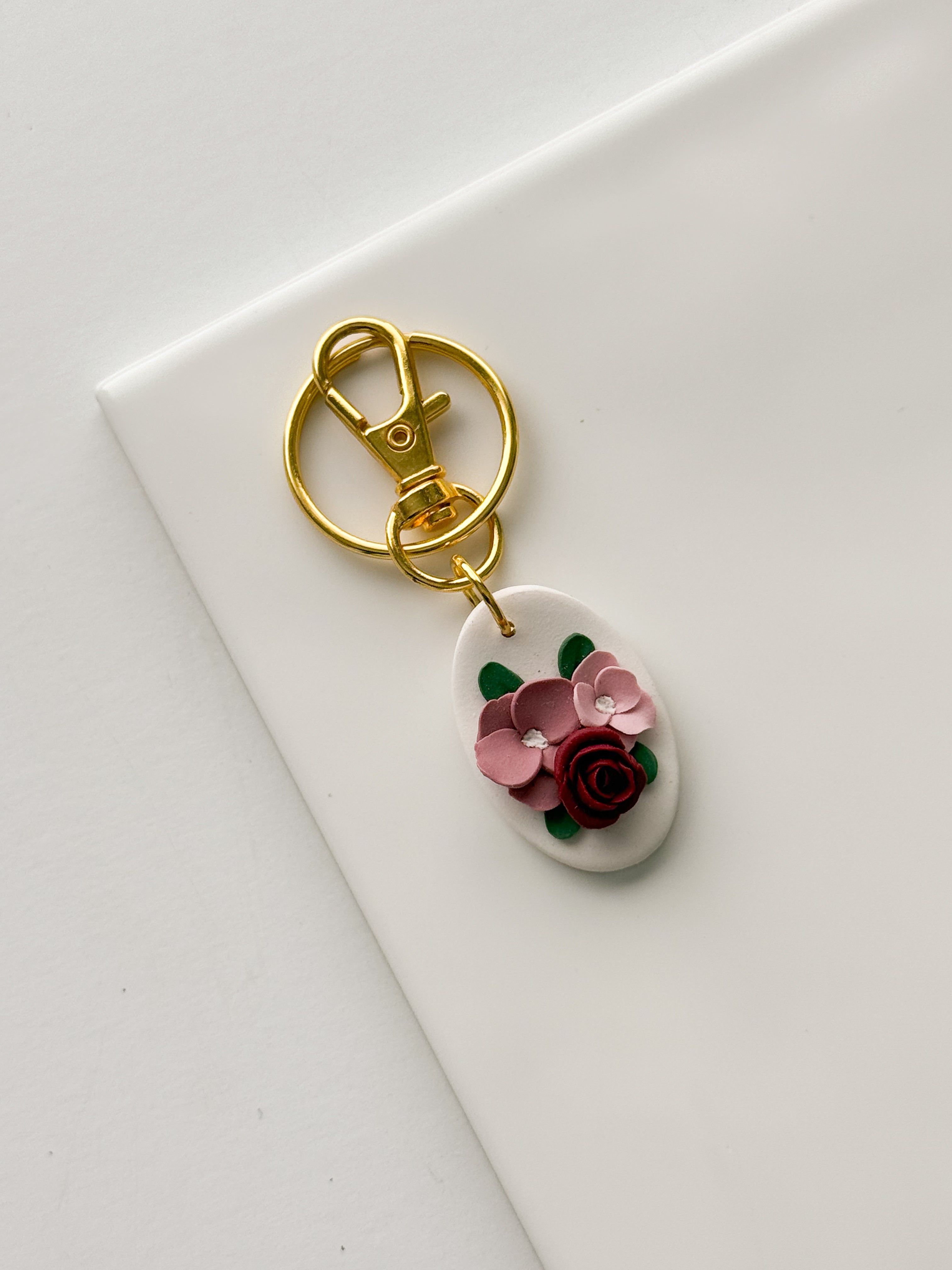 Rounded Oval Floral Keychain