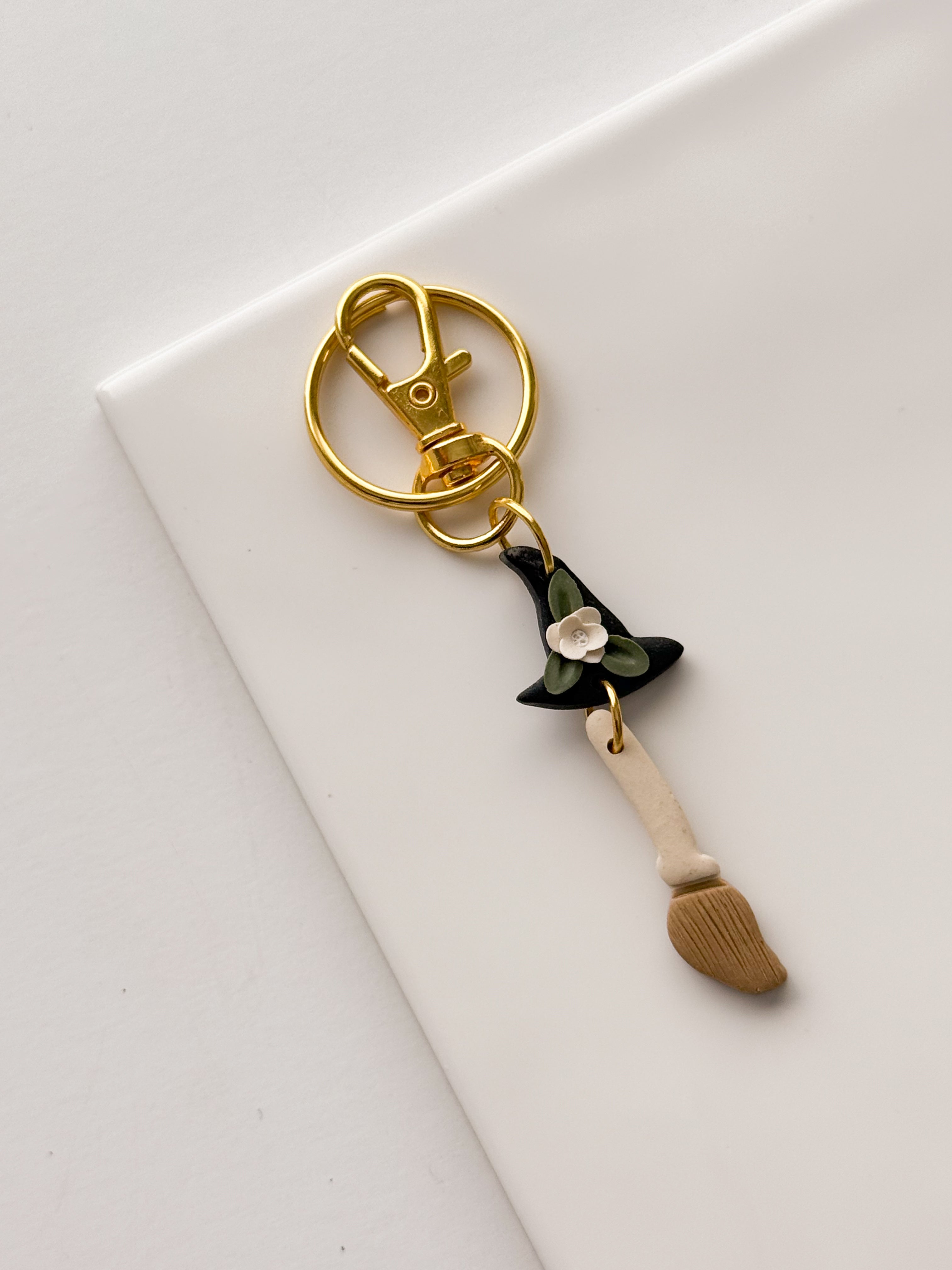 Witch Hat and Broom Dangle Keychain