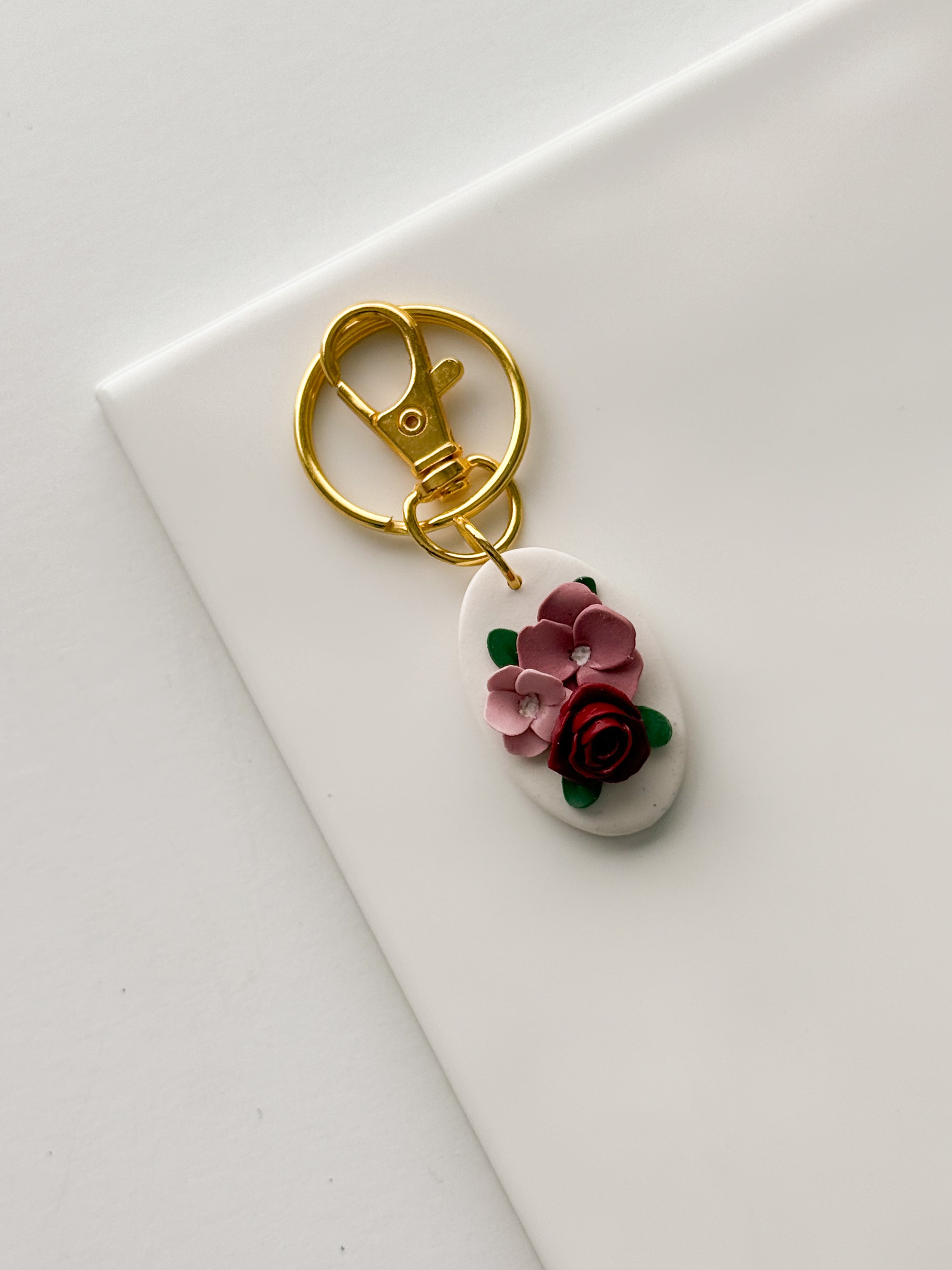 Enchanted Rose Floral Oval Keychain