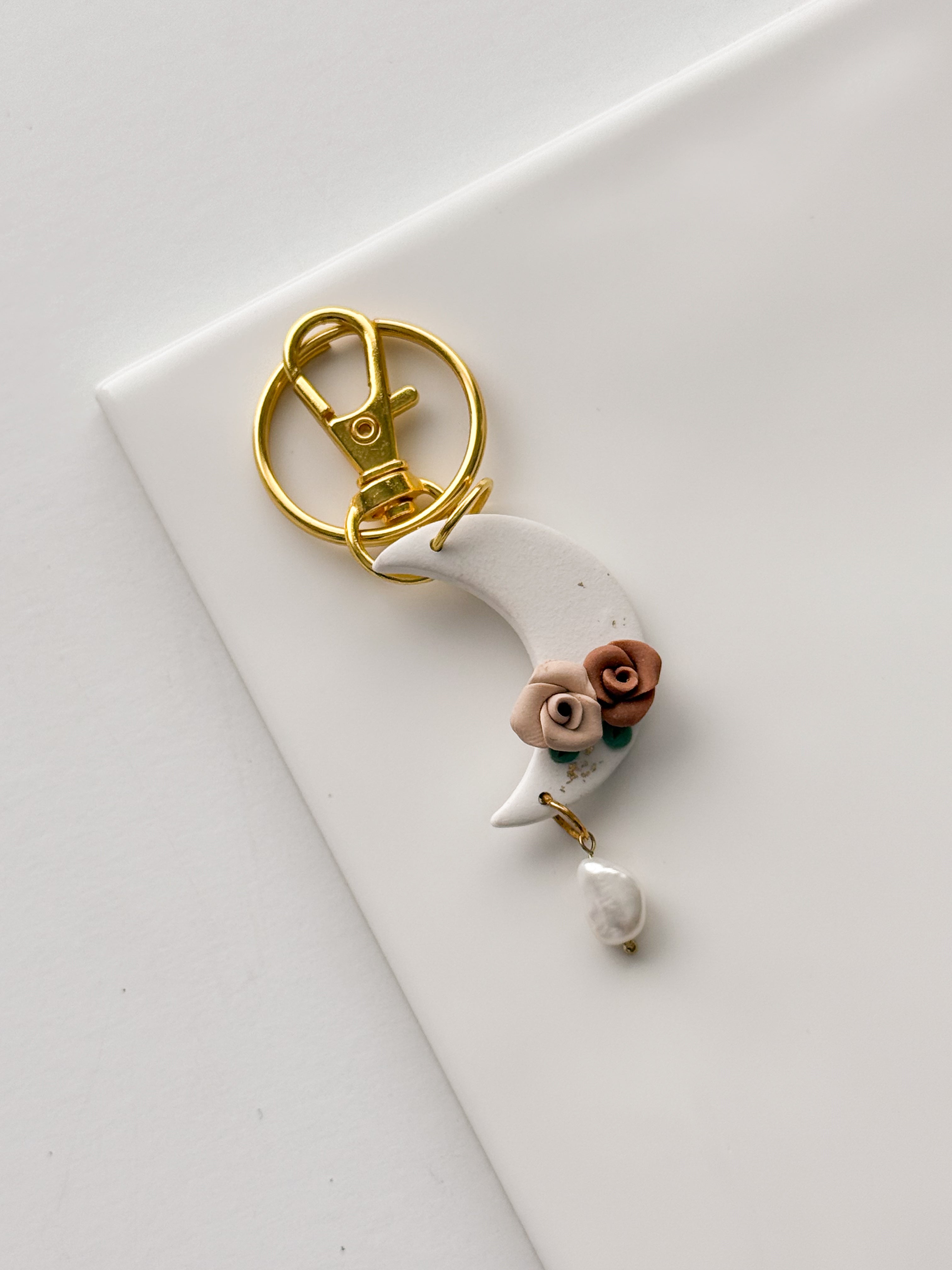 Floral Moon Pearl Dangle Keychain