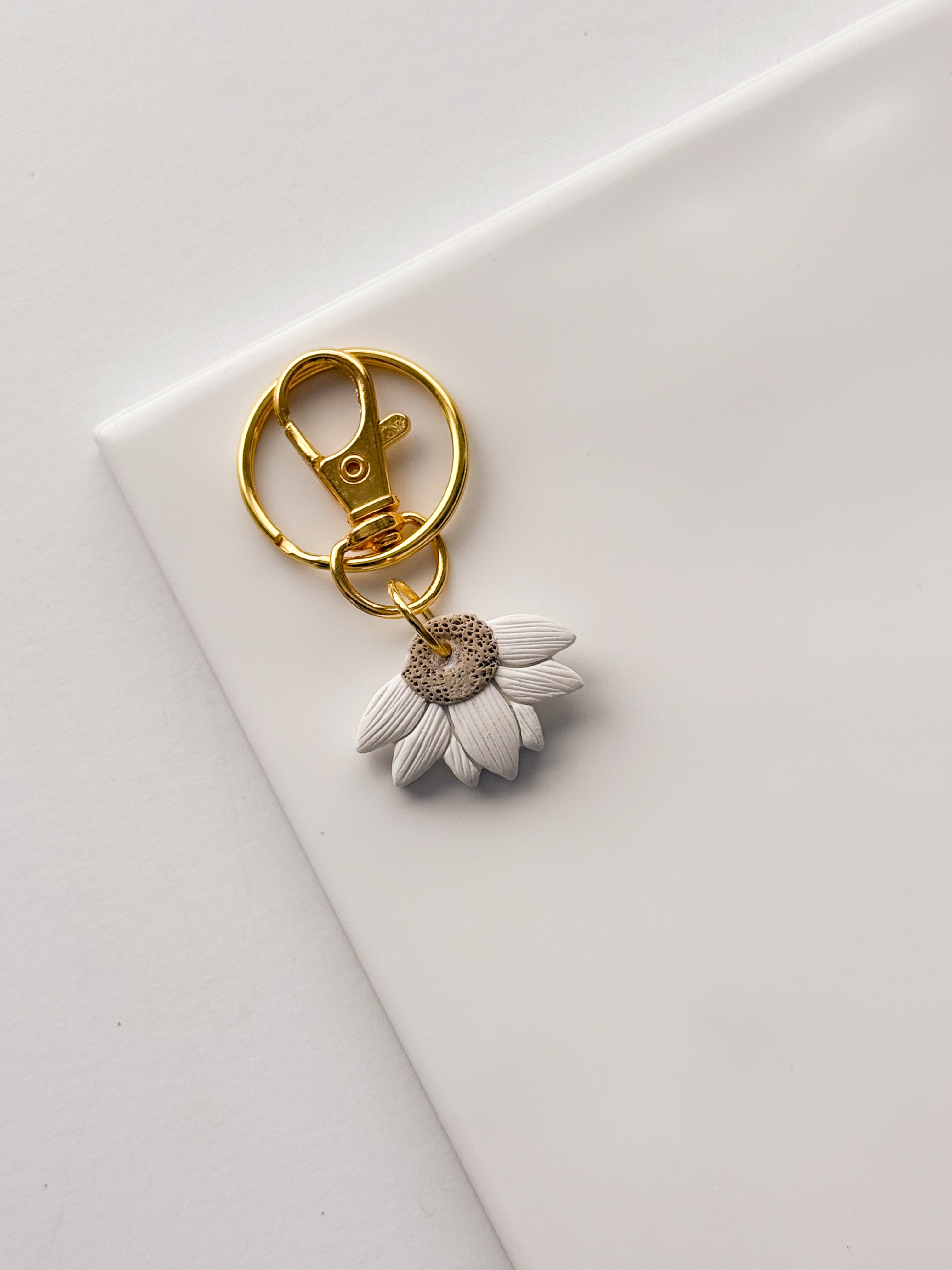 Half White Daisy Keychain