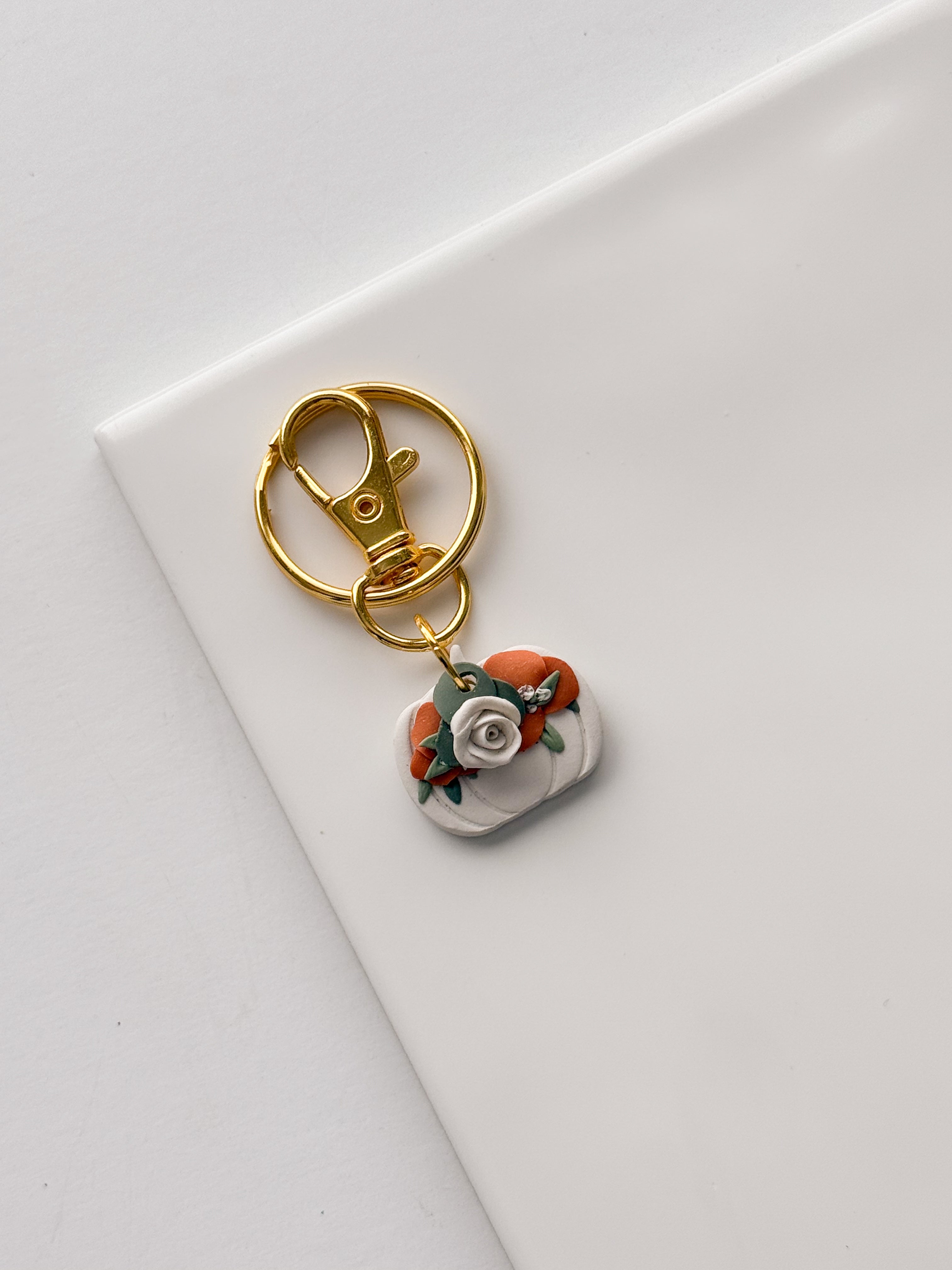 White Floral Pumpkin Keychain