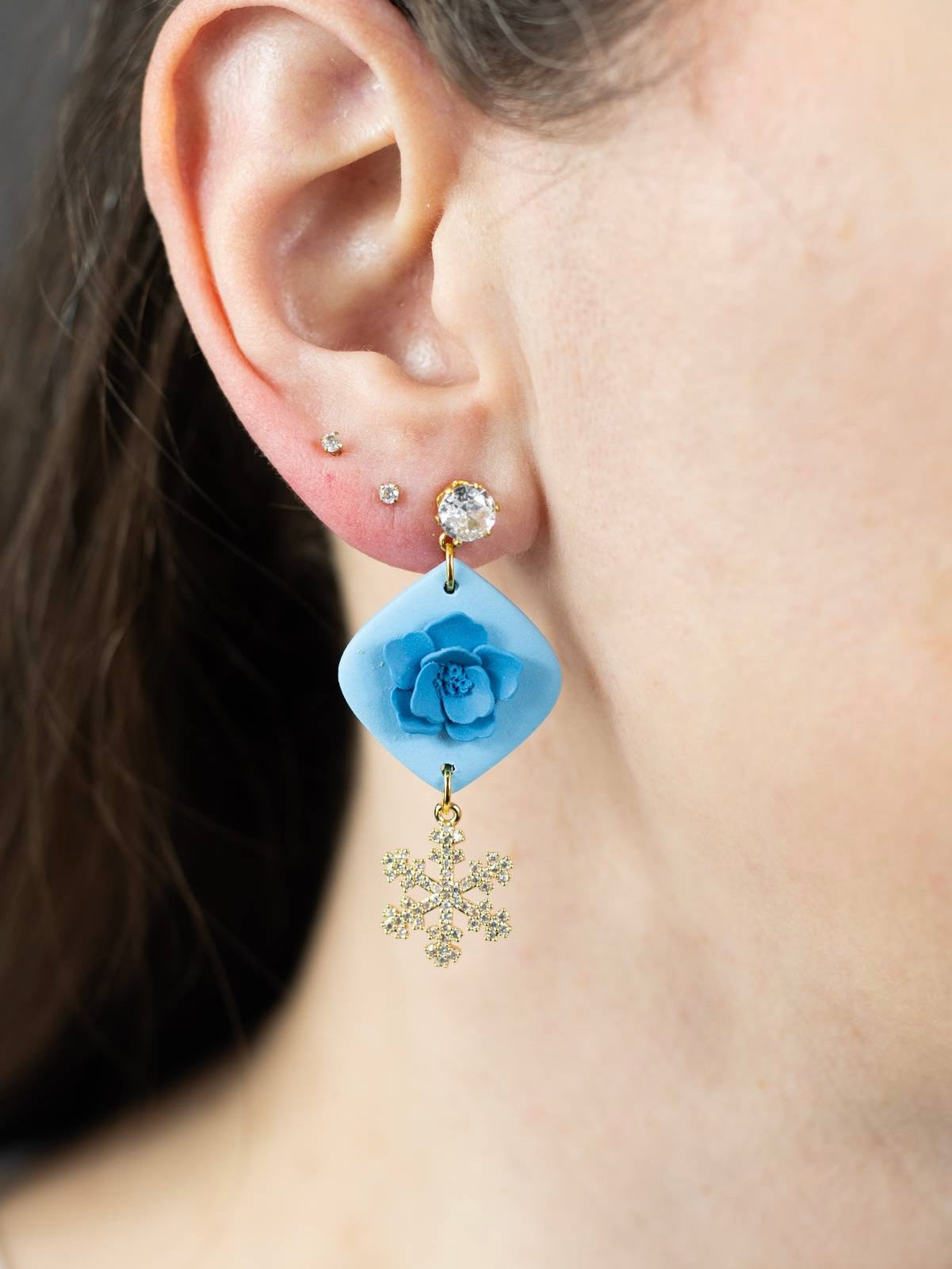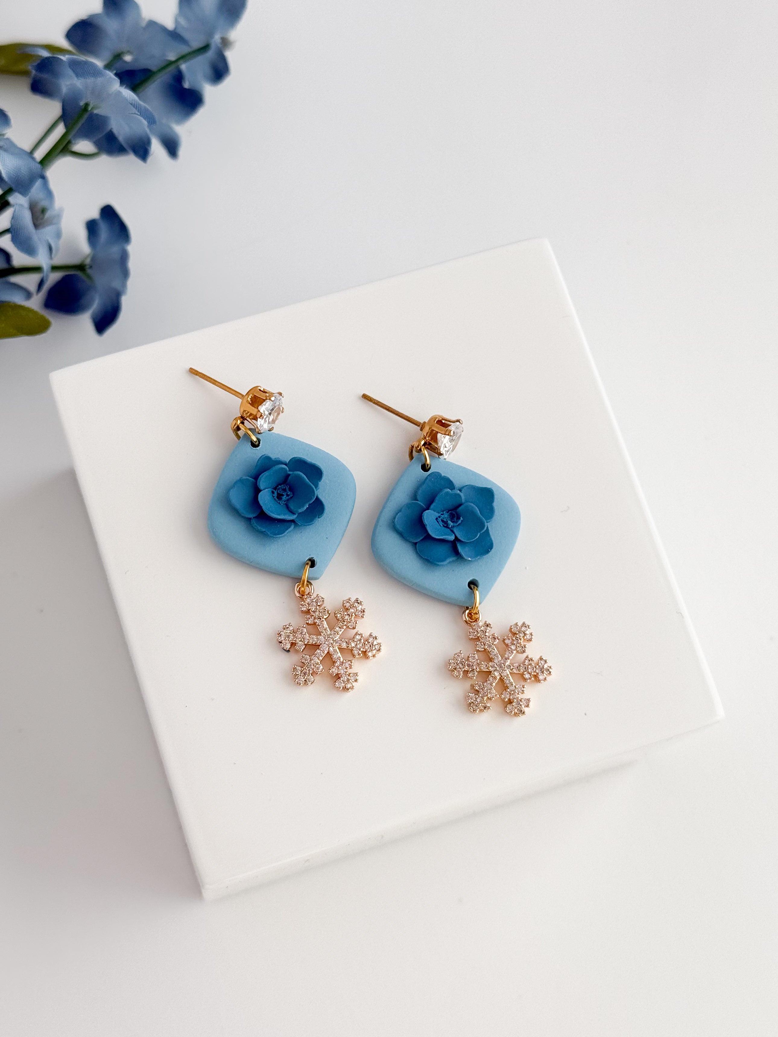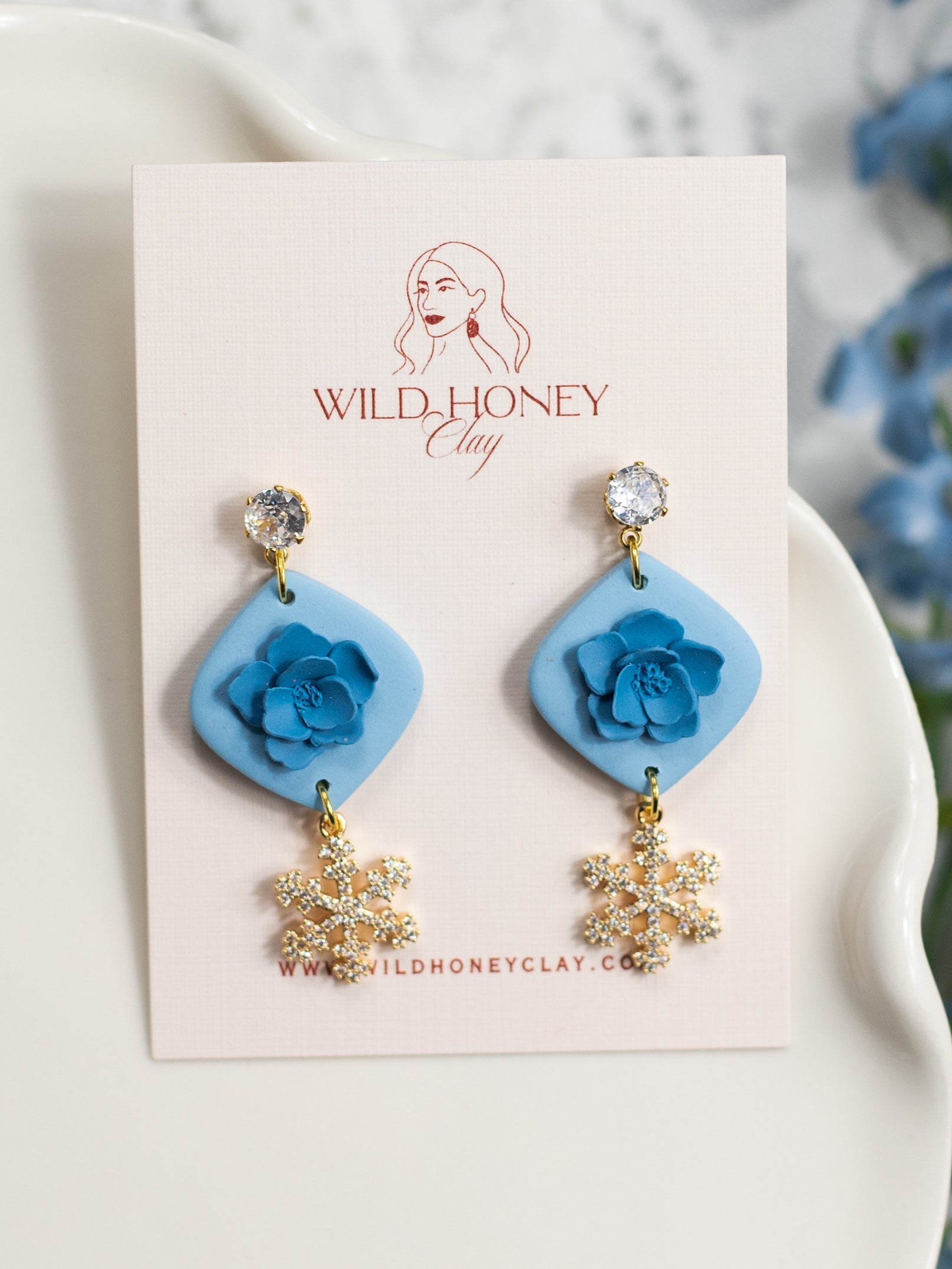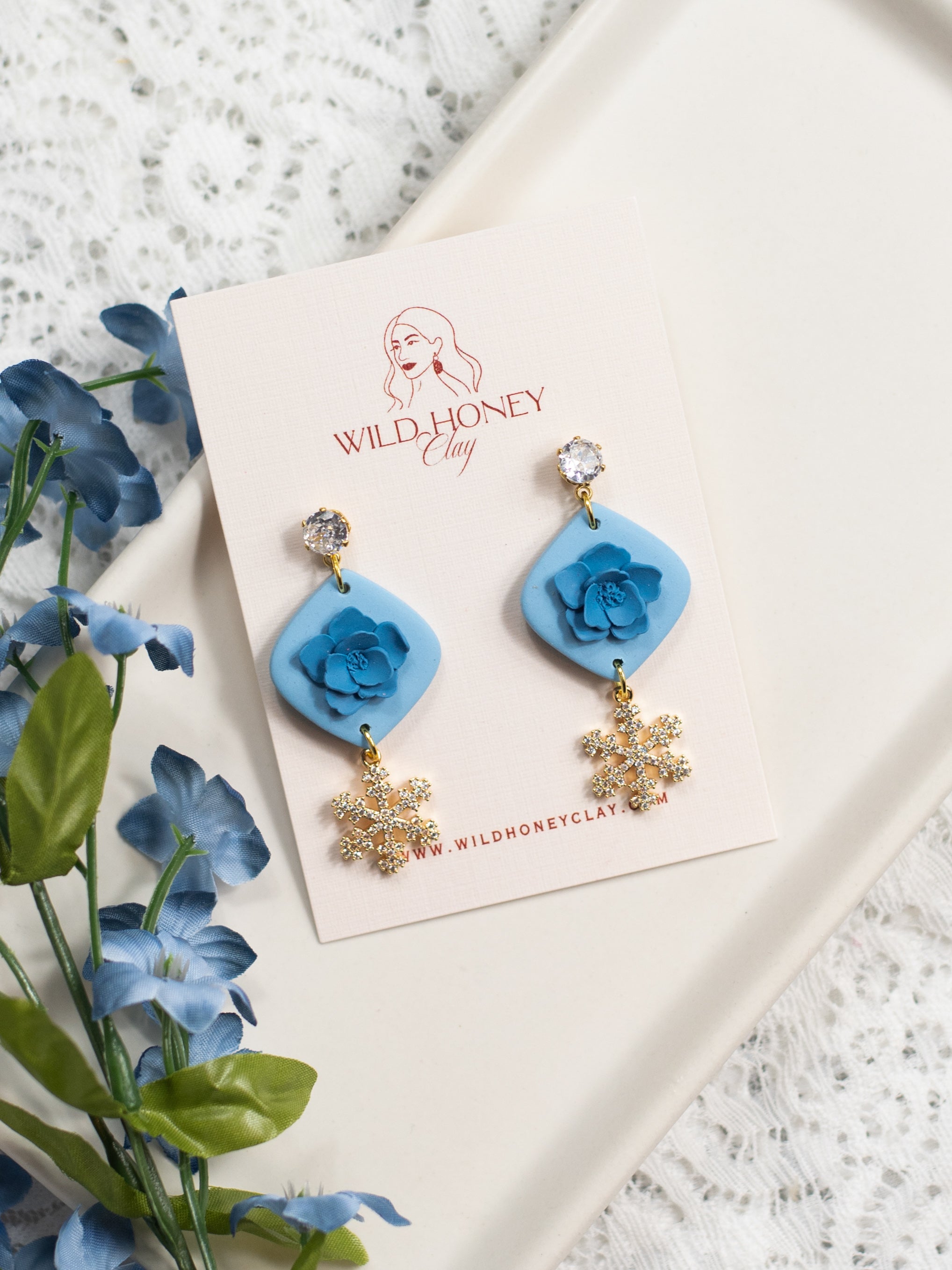 Colors: Blue Florals with a Zircon Diamond Snowflake Charm