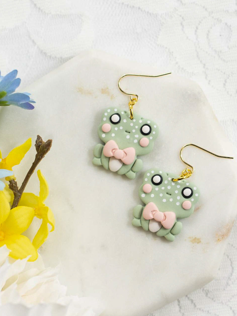 Colors: Muted Green Frogs with white polka dots and a light pink bow