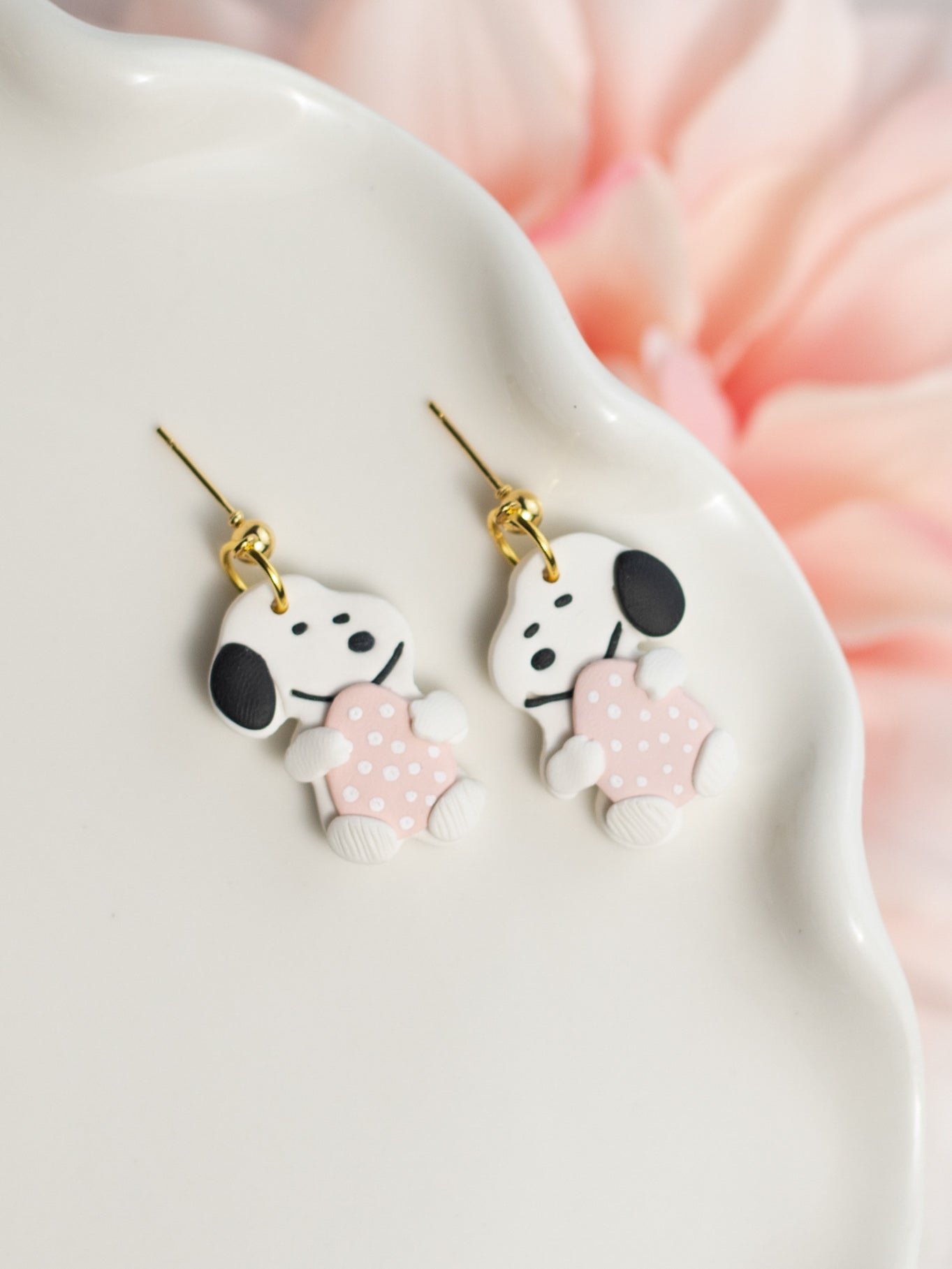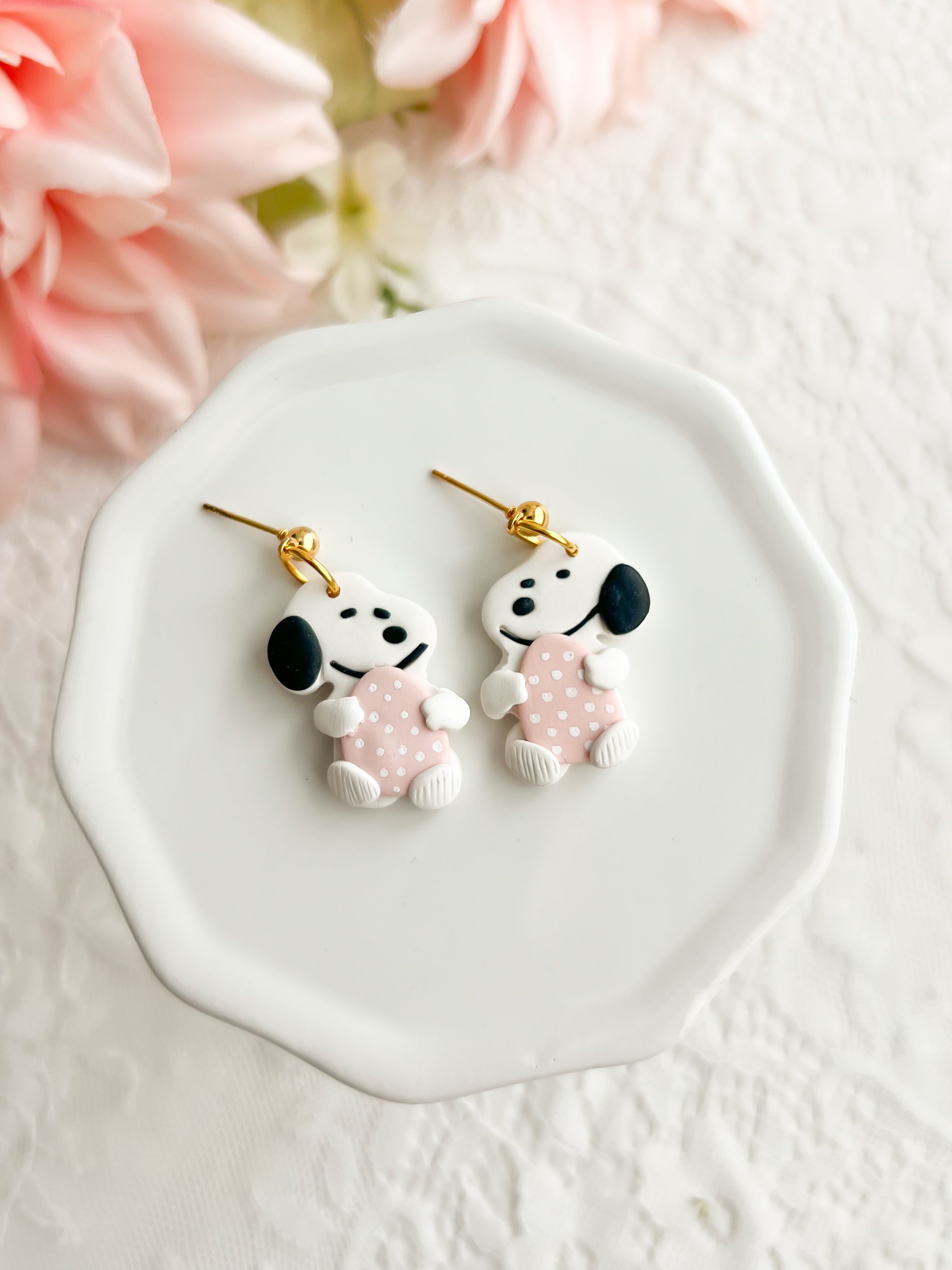 Colors: White dog with Pink egg with white polka dots