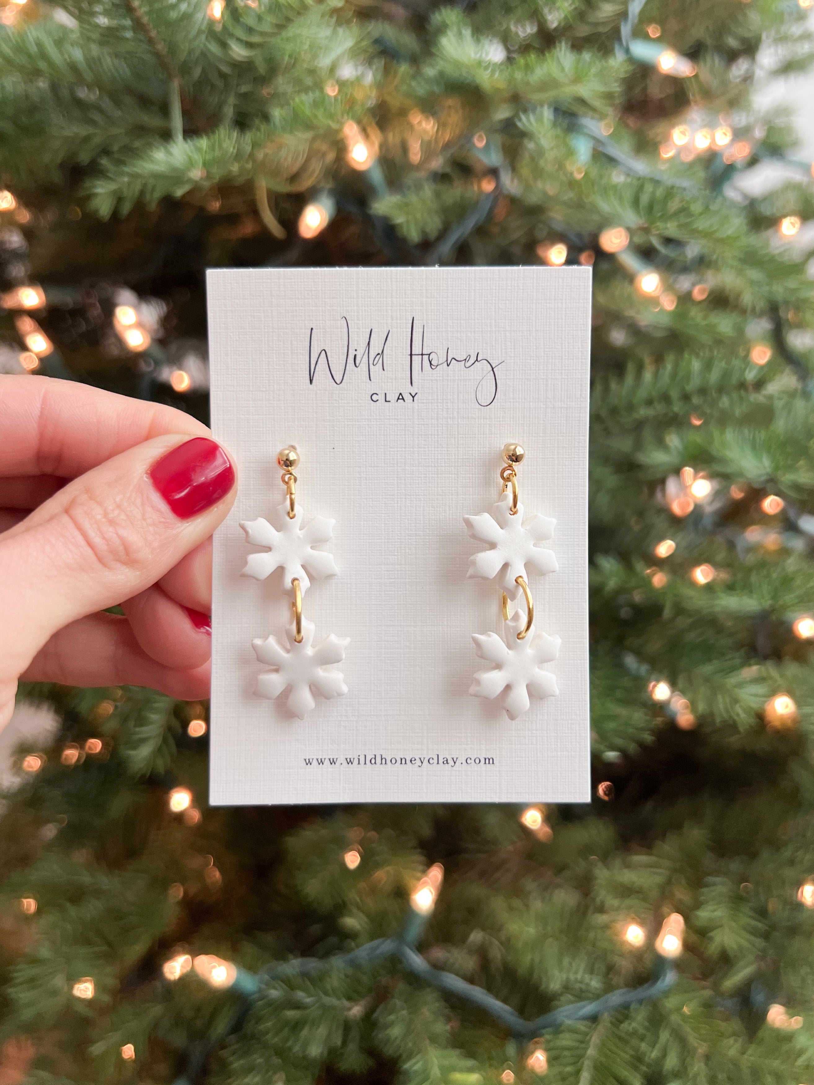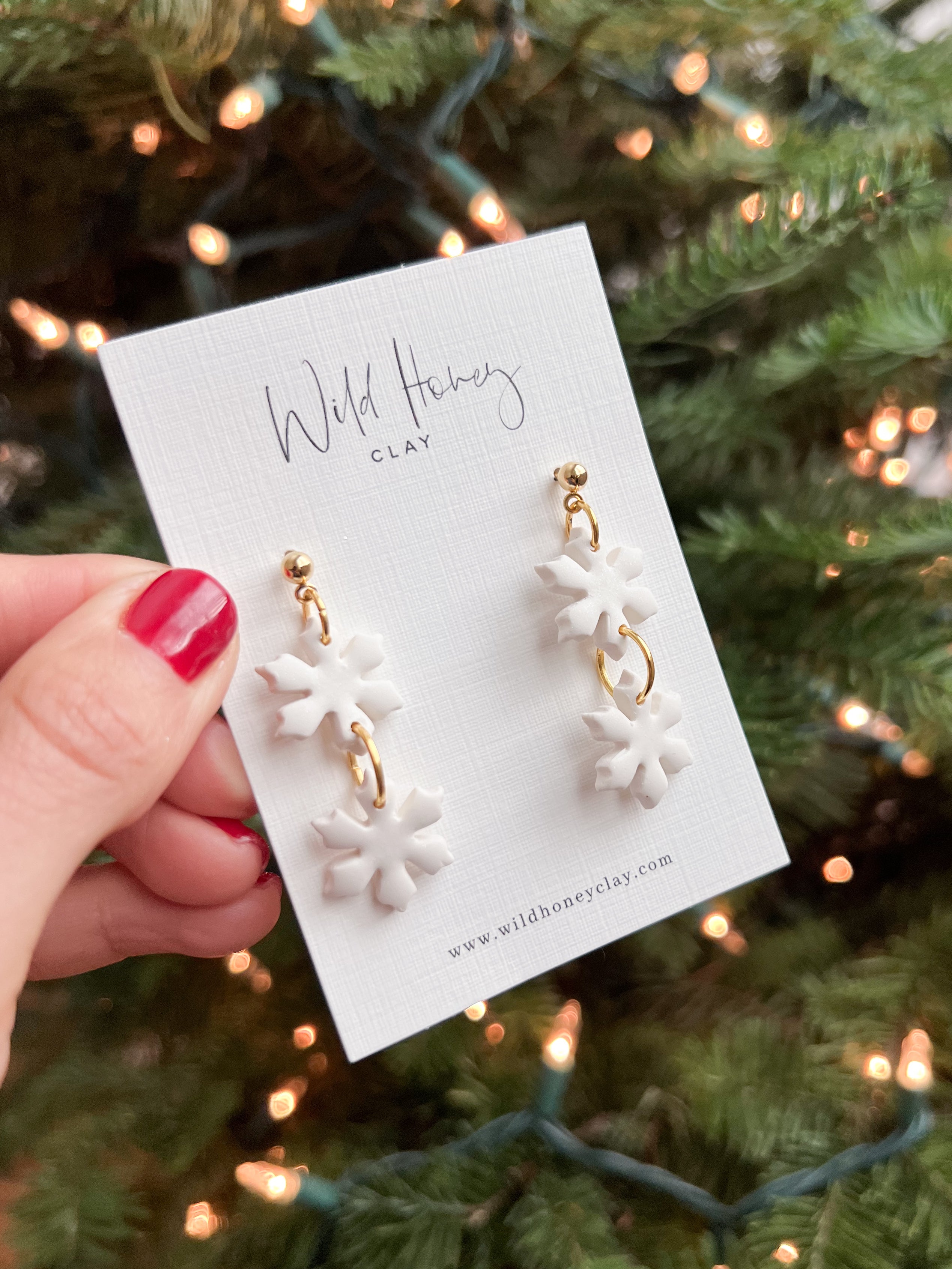 Add a touch of elegance to any outfit this holiday season with these snowflake duo dangles