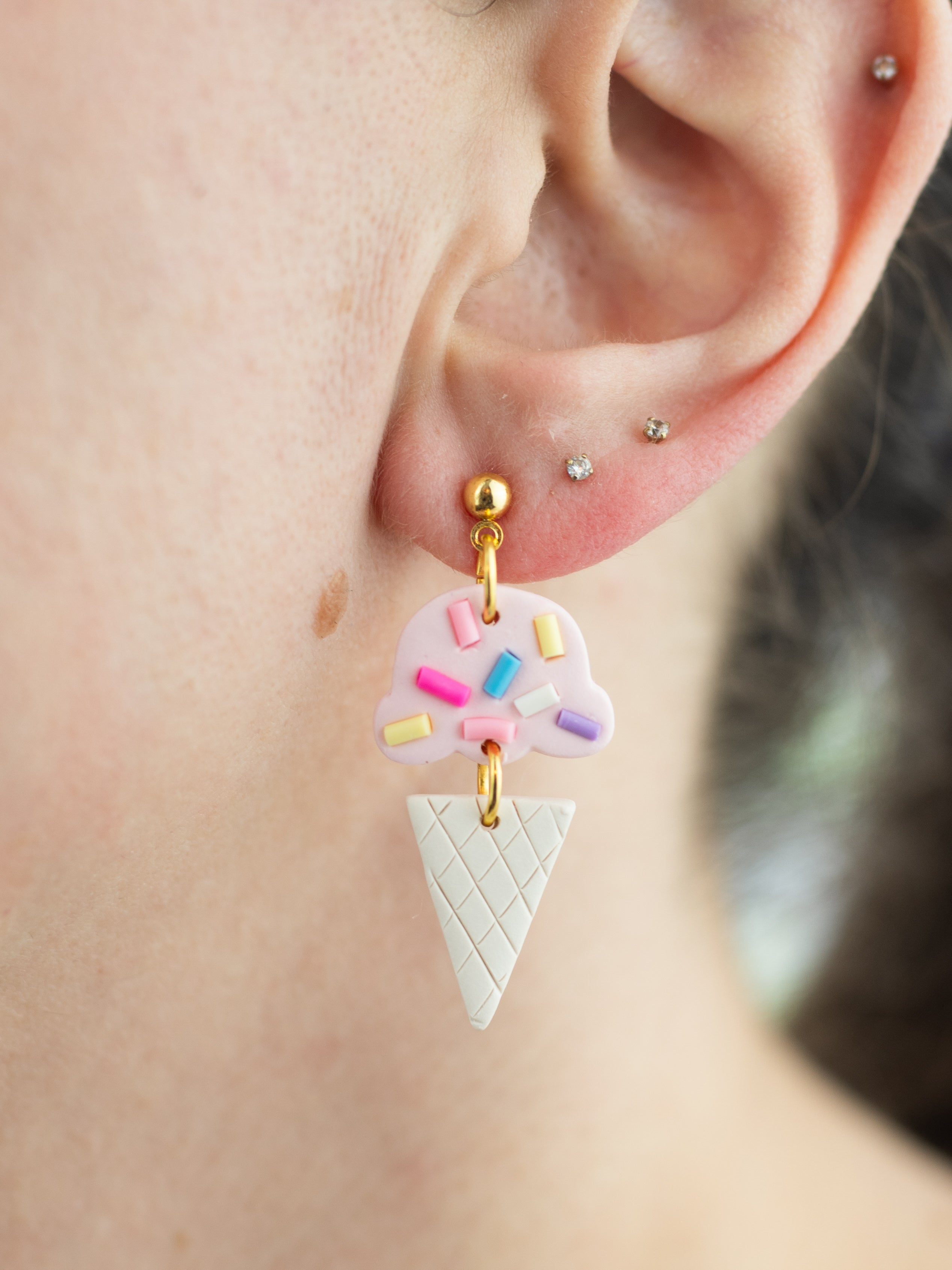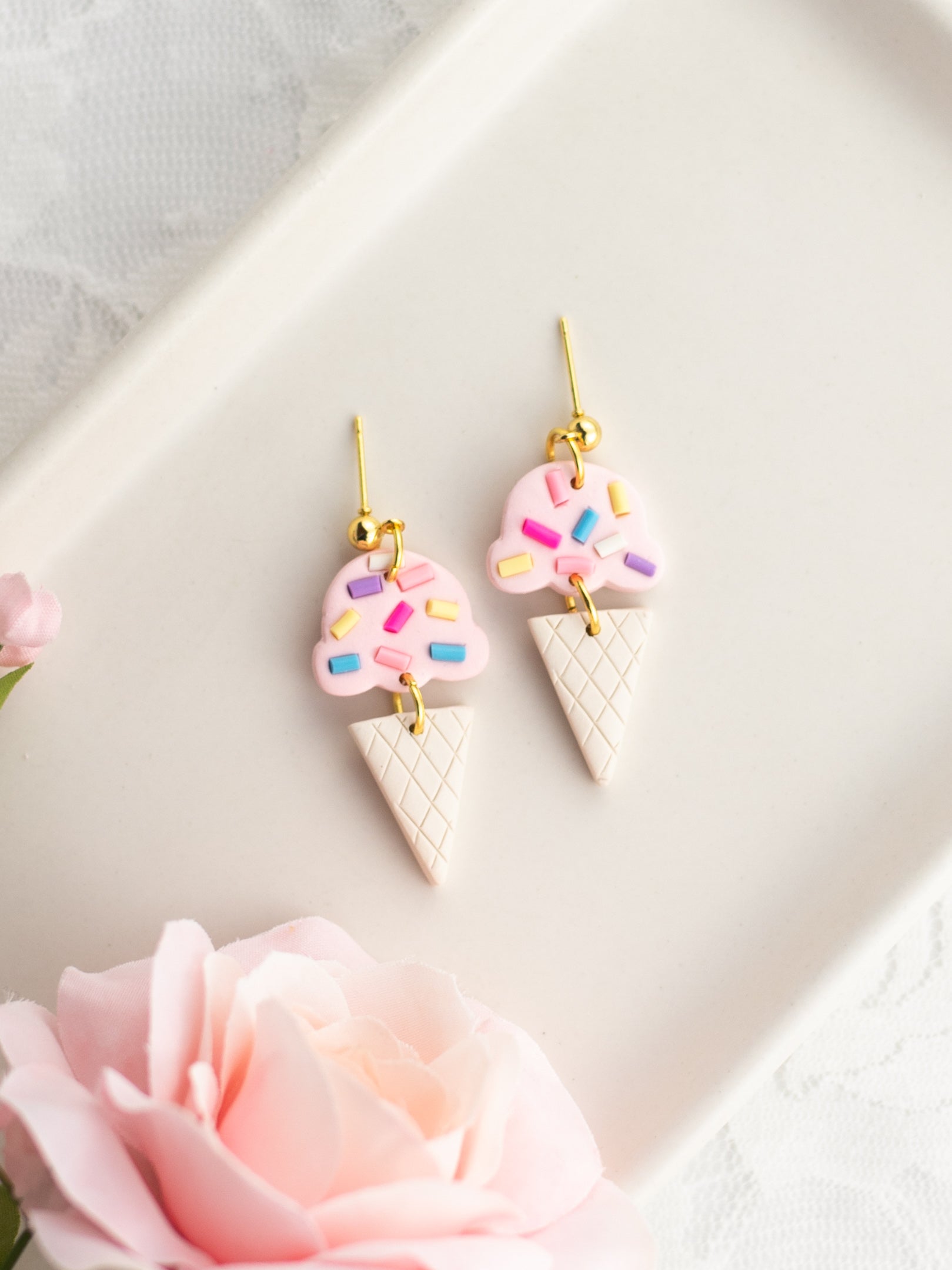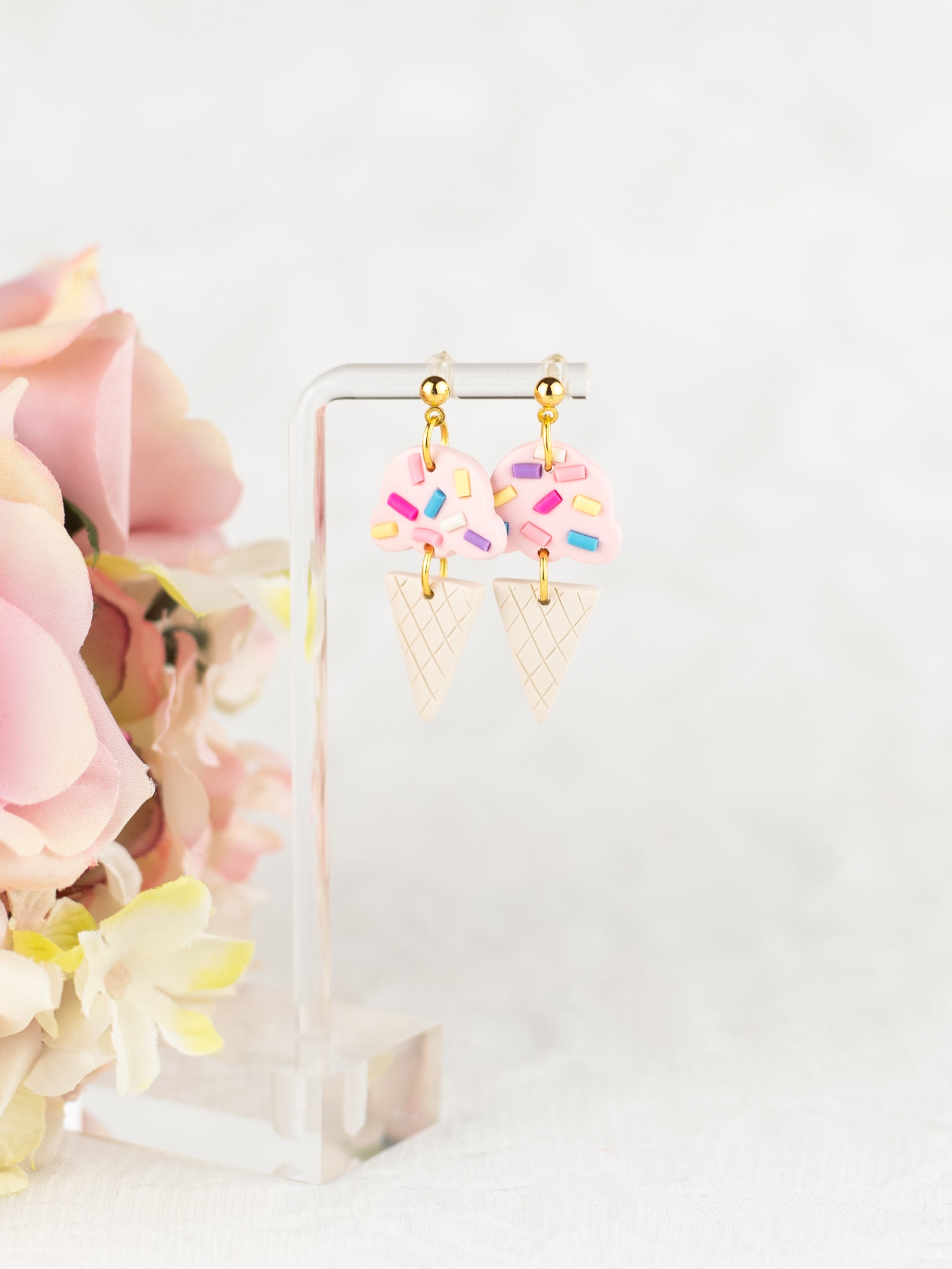Colors: Pink Ice Cream with colored sprinkles and a light latte textured bottom cone