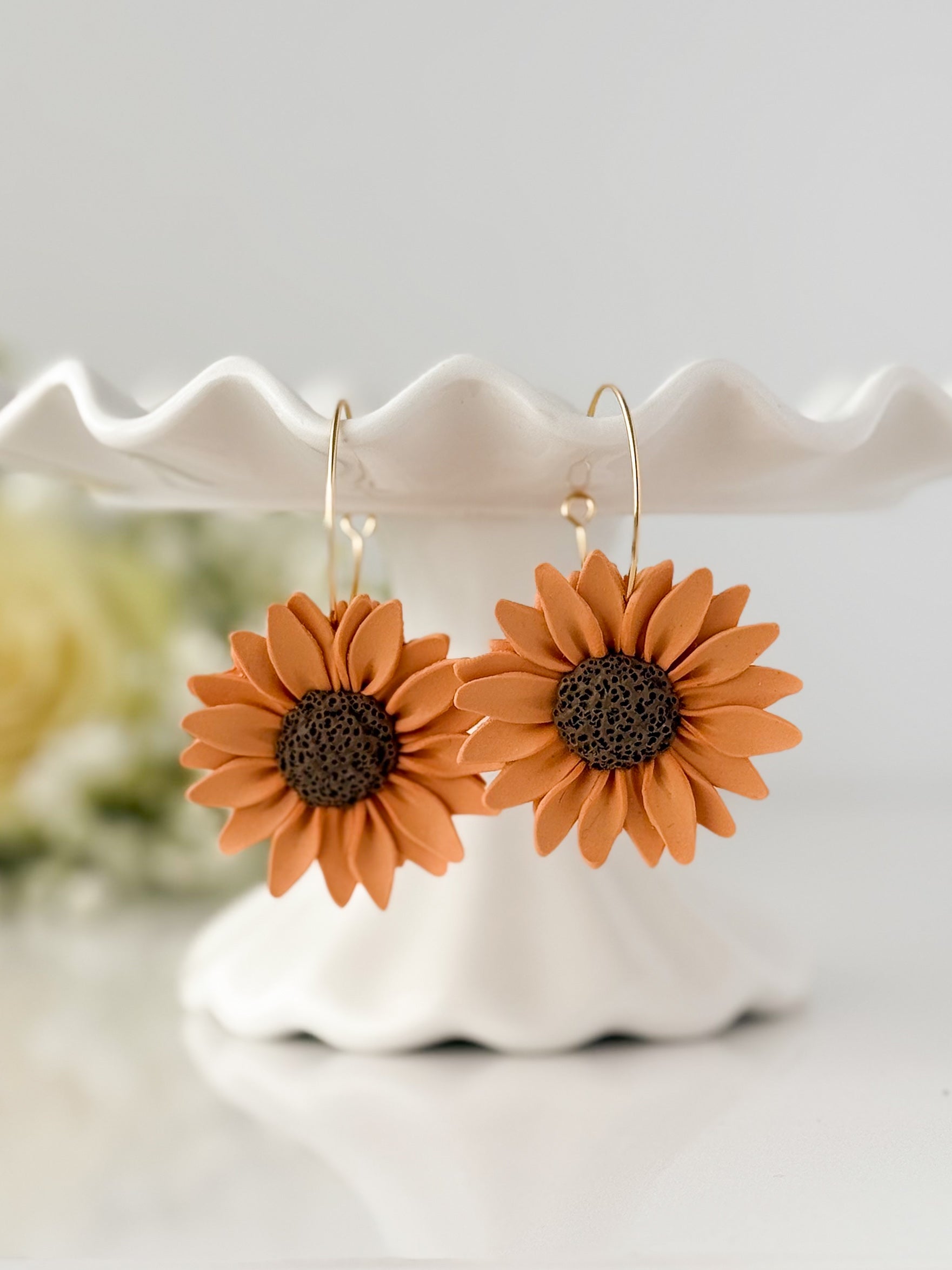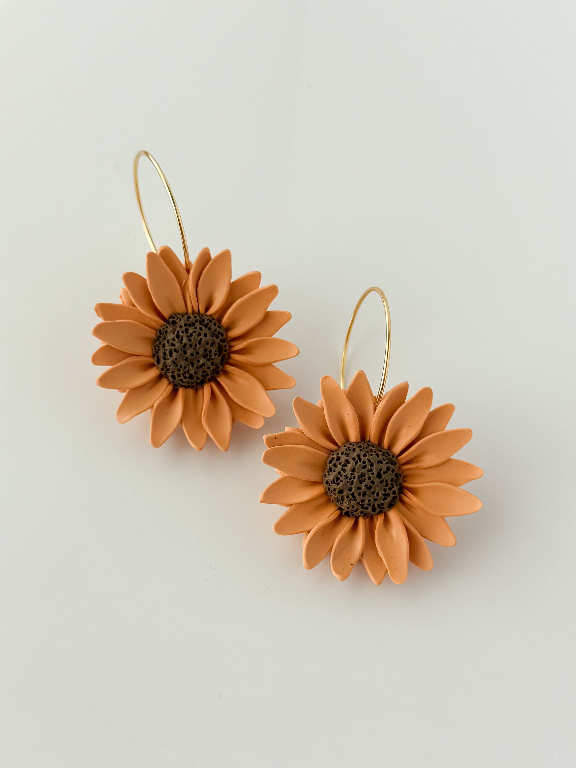 Channel pure sunshine with these vibrant sunflower earrings—bold, joyful, and handcrafted petal by petal. With rich terracotta-orange petals and a textured chocolatey center