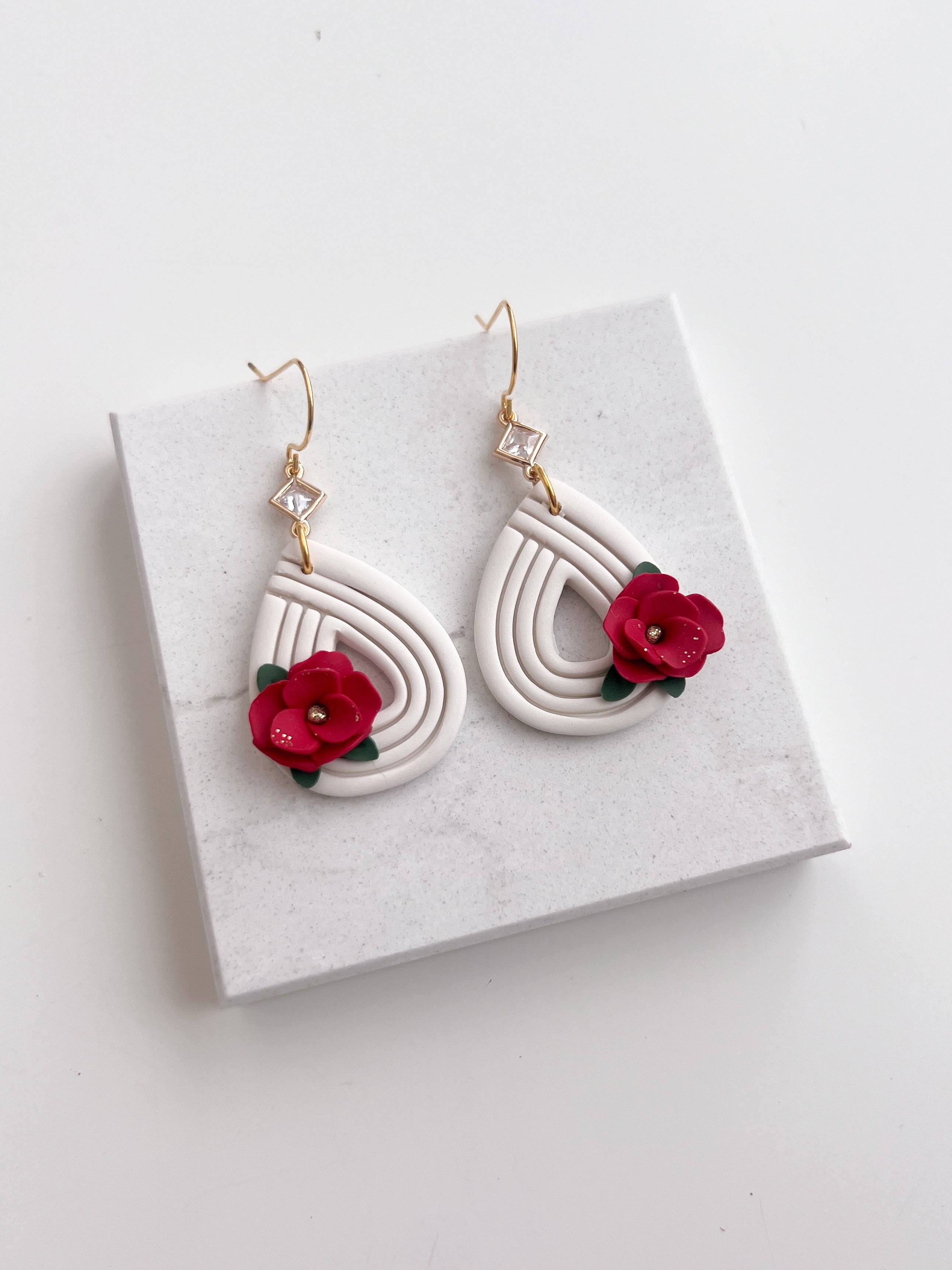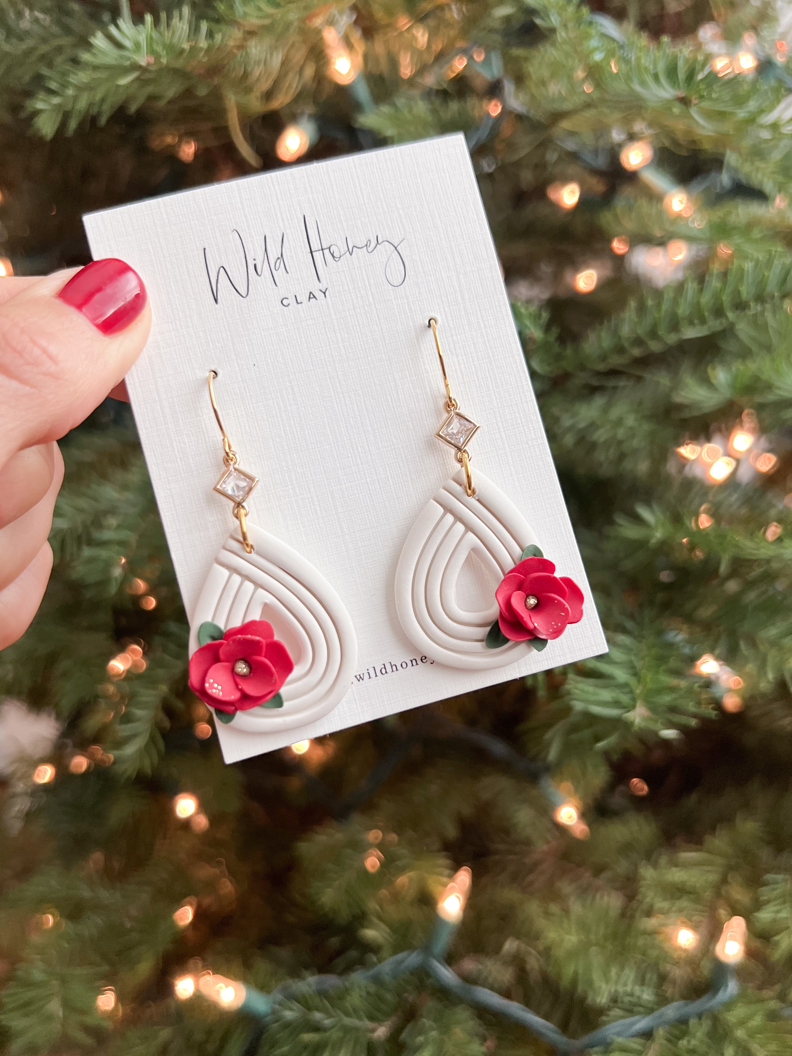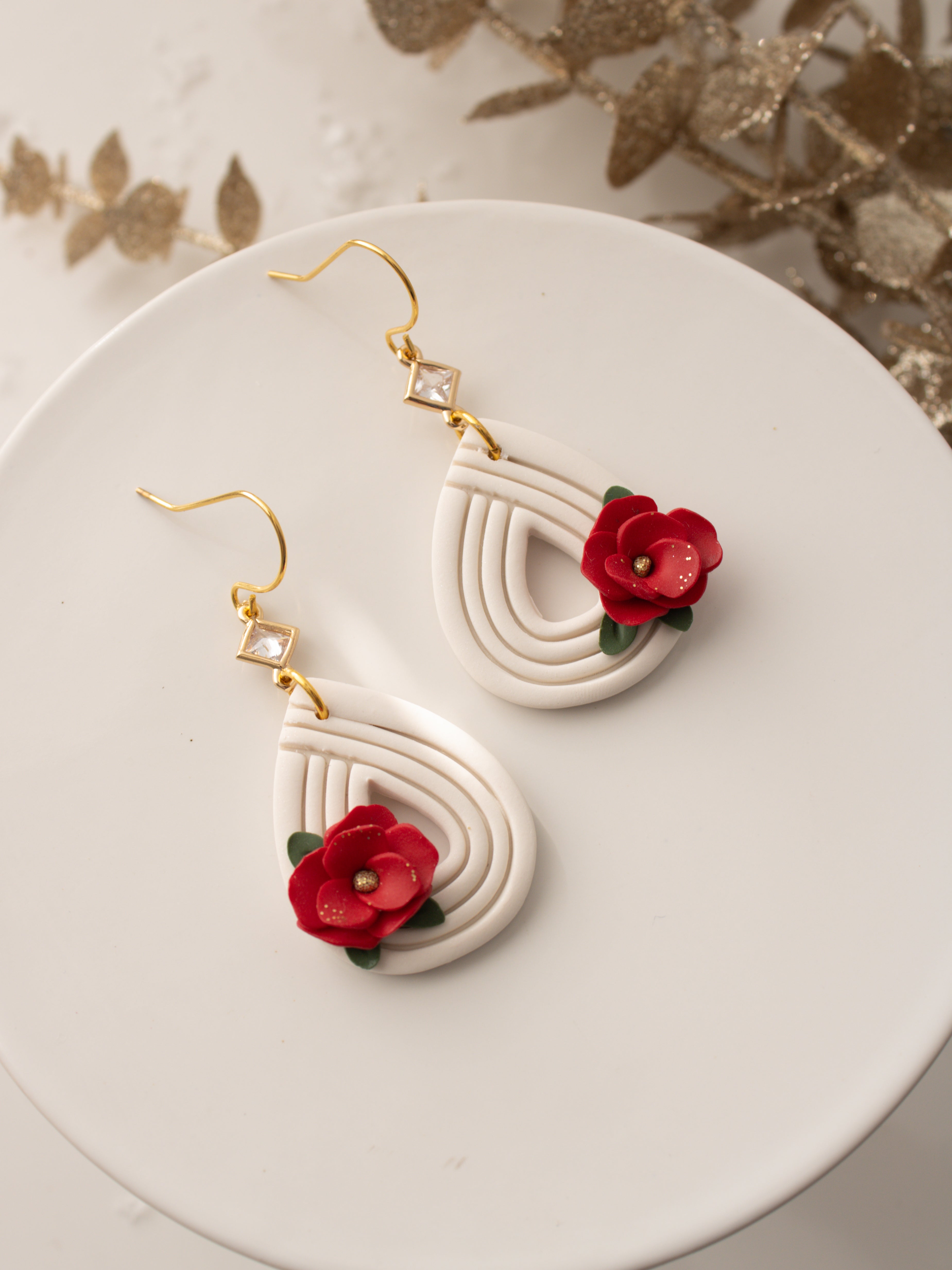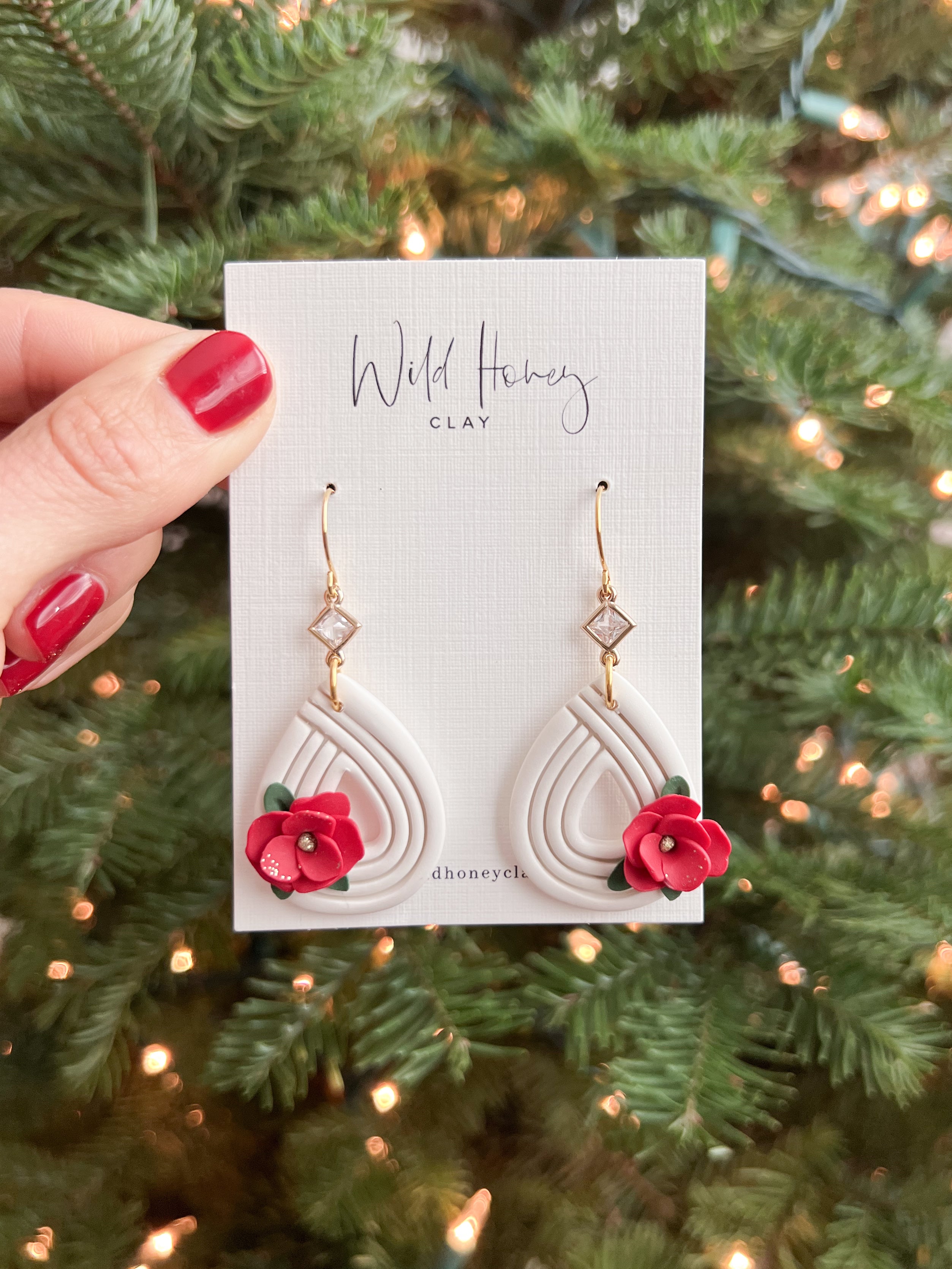 Add a touch of elegance to any outfit this holiday season with these statement Christmas floral dangles